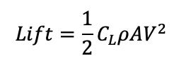 Where p is the air pressure, rho is the air density, R is a constant, and T is the air temperature. Recall that lift generated by wings can be expressed in the following way: